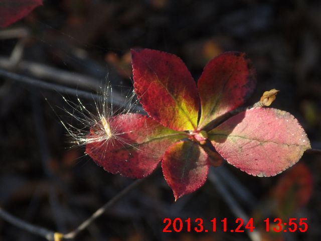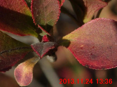 明らかに植栽のものには興味が湧かないのだが、鮮やかに紅葉していたの眼を留めた。そしたら、果実が見えたので撮影してみた。