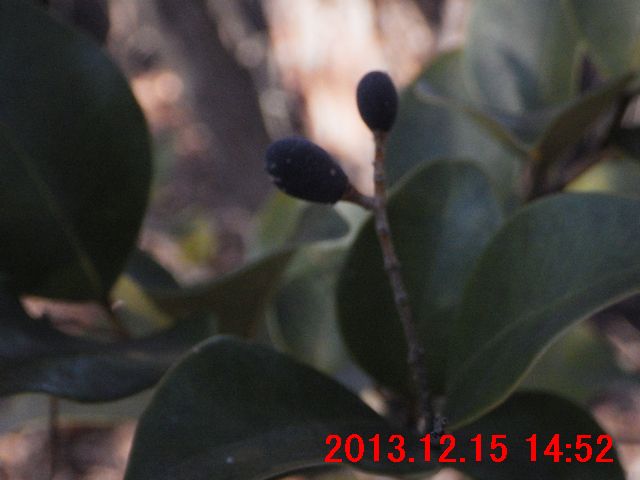 ネズミモチの果実は、この丘陵地帯の常緑樹では、その色合いが目立つので撮影したが、風でぶれてしまっている。