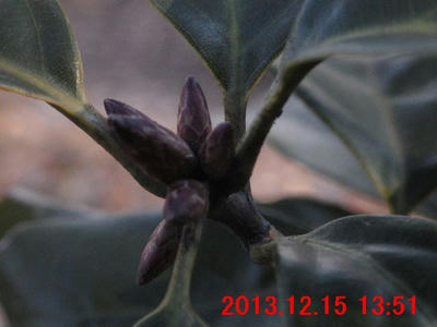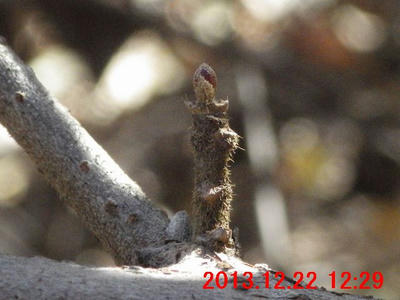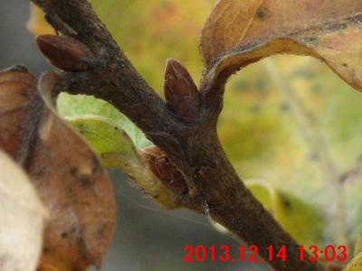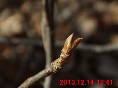 画像で確認すると蕾のようだった(画像13)。また、枝先には冬芽のようなものが写っている。冬芽のようなものについては、次の観察時にはきちんと確認してみたい。
