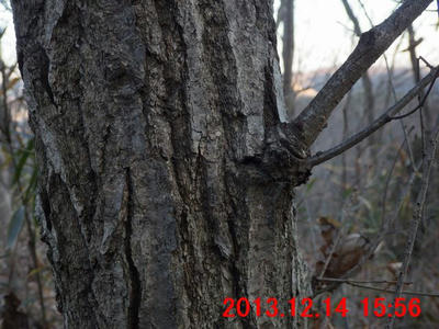 山の陰で、夕刻であったが、ムラサキシキブの撮影のついでに、コナラの冬芽と樹皮を撮影した。