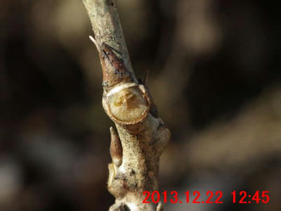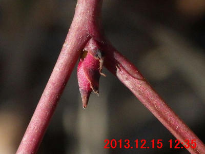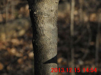 ガマズミの仲間と思うようになってきた。画像28 の樹径、8mmφ。前回(2013.12.01)の観察の画像50~画像52 の樹である。葉が落ちて、冬芽が目立つようになっていた(画像28)。