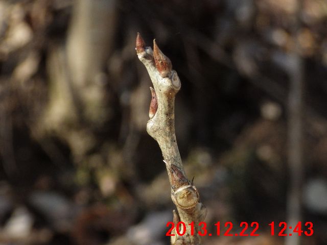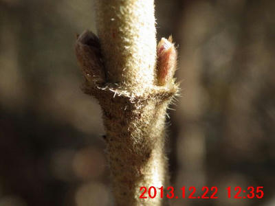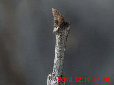 ★ 画像10~画像12 は、同じ枝先の冬芽。メモが欠落していて、何の意図で撮影したのか不明。2013.11.30の記録画像 5 とは、芽鱗の形状が違うが、リョウブ(令法)の冬芽のようだ。