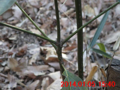 若い枝の葉痕が新鮮で、葉軸を落として間もないと思えた。画像 1 ~画像 6 と同種。