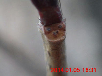 ●オトコヨウゾメ(男莢迷) 冬芽、枝先に二つ。が、目立つ(多い)。