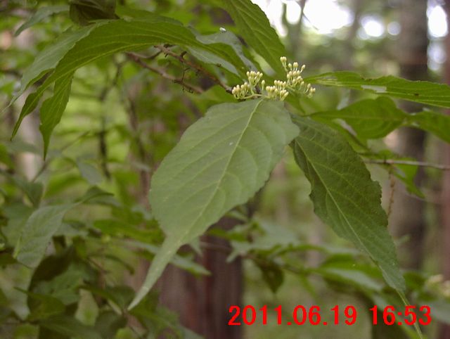 Callicarpa japonicaムラサキシキブの花芽というのか、蕾というのかを撮影。明るさが足らなく、風で揺れて、おまけに、手ブレの画像だが、参考になるので掲載しておく。