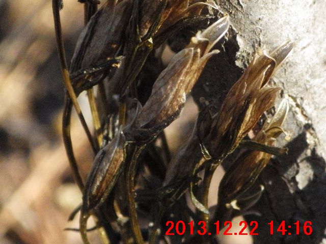 センブリは、風のため、樹に寄り掛かっていた個体を撮影。