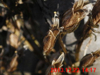 開いた莢の形が明らかに変わってきた。莢の反り返り具合が面白い。