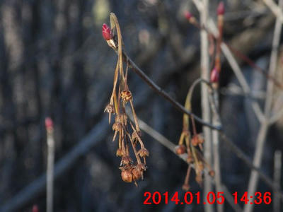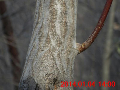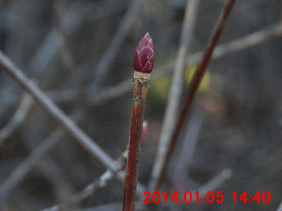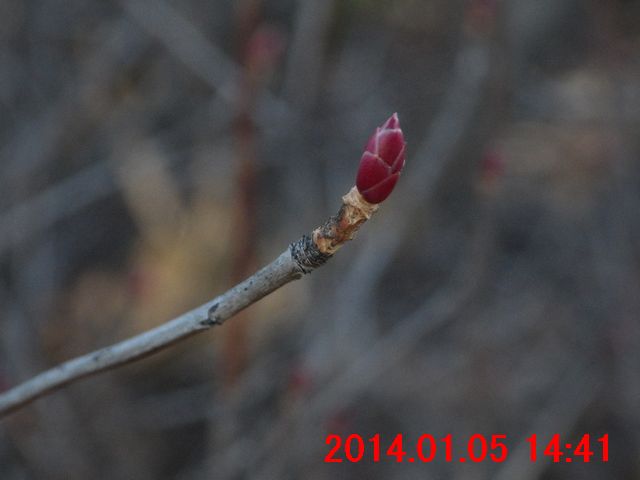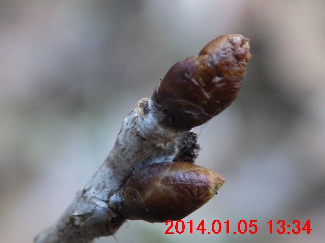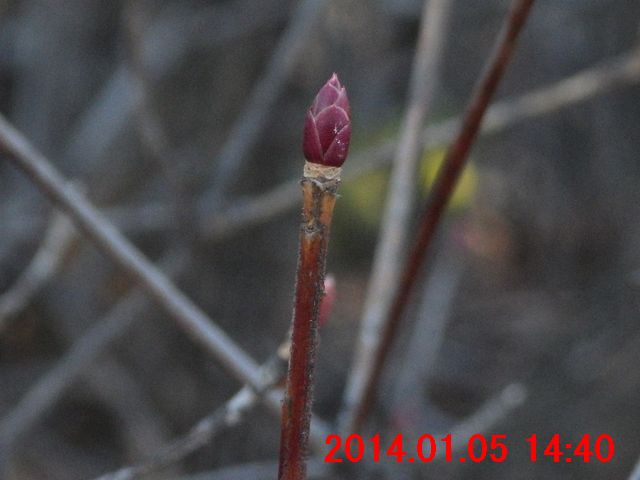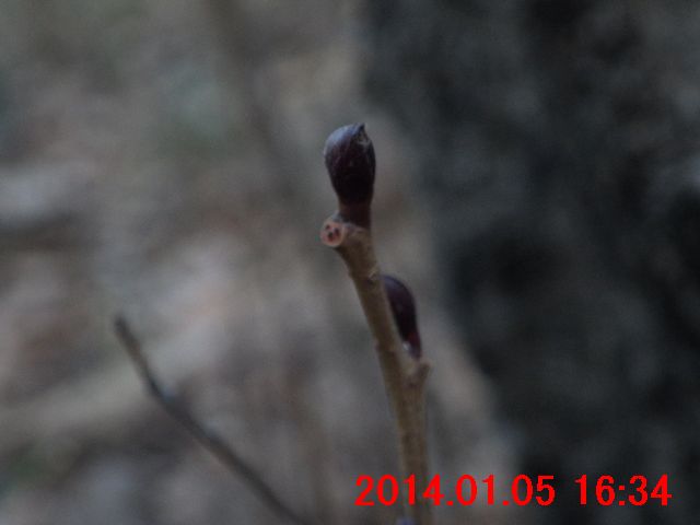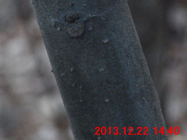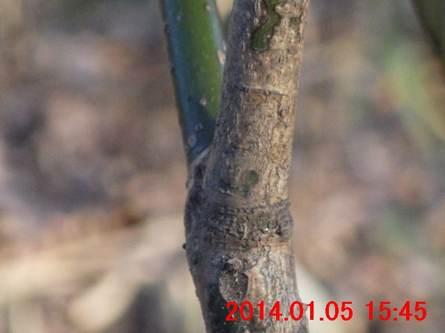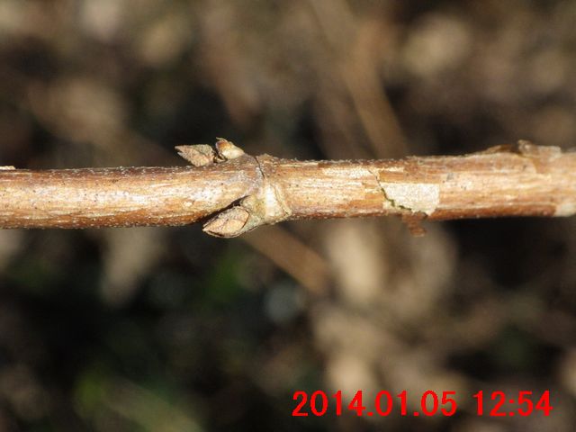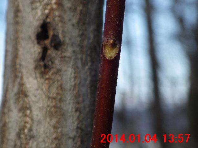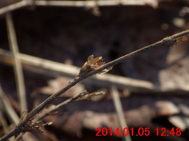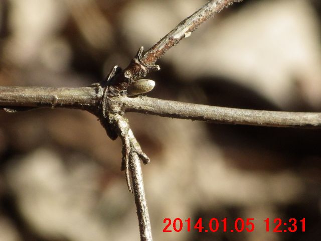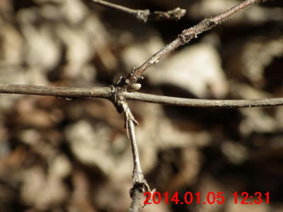 ガマズミの仲間と思うようになってきた。画像28 の樹径、8mmφ。前回(2013.12.01)の観察の画像50~画像52 の樹である。葉が落ちて、冬芽が目立つようになっていた(画像28)。