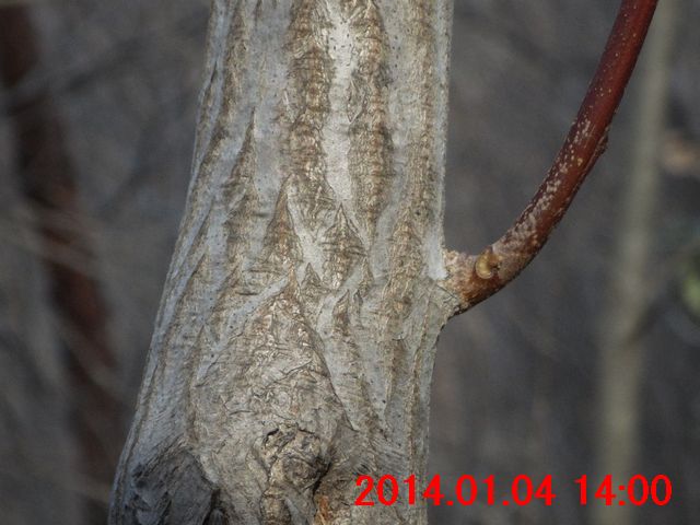画像 9 と、画像10 に冬芽が写っている予定だったが、アオハダの冬芽は小さいとみえて、画像では確認できなかった。