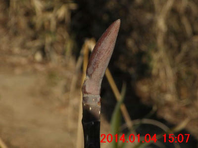 左手の藪の中に小さな芽吹きが見えたので近づいてみた。