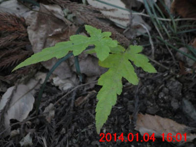 間違って開いてしまったと思われるモミジイチゴの葉があった。