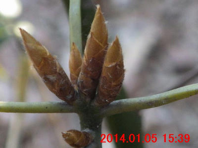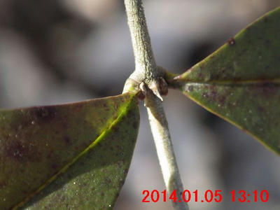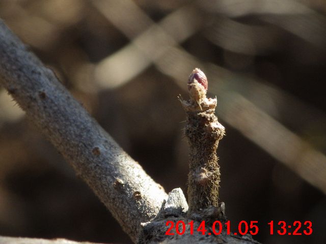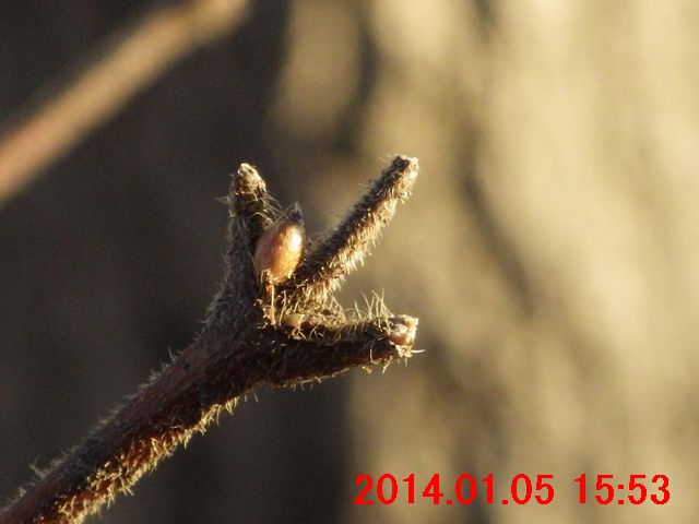 冬芽と葉痕・維管束痕を撮影した。しかし、日陰のうえ夕刻なので、次回以降条件の良いときに再度、観察・撮影の必要あり。