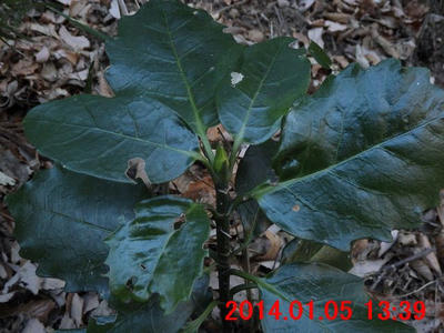 葉は対生(互生のようにも見える)。ゆるやかな粗い鋸歯のある常緑樹。