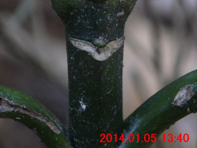 若い枝の葉痕が新鮮で、葉軸を落として間もないと思えた。画像 1 ~画像 6 と同種。