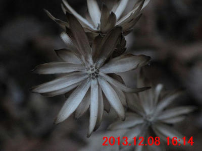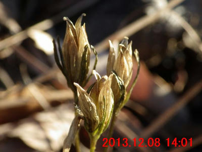 この様な姿を見たのは初めてかも知れない。この尾根を登りだしたのが11月23日からなので、何が生えていたかは定かではないが、立ち姿から、トウギボウシを連想した。