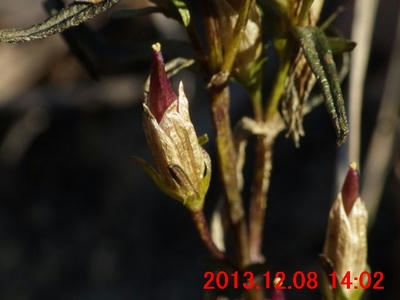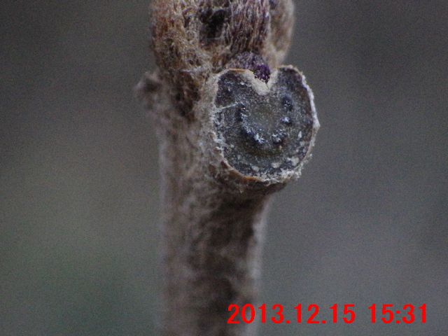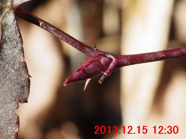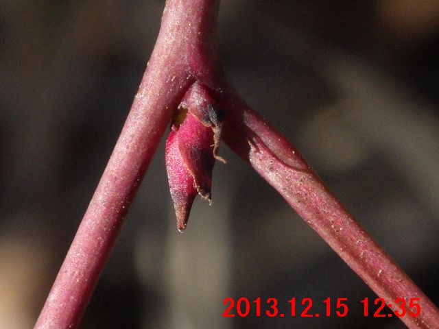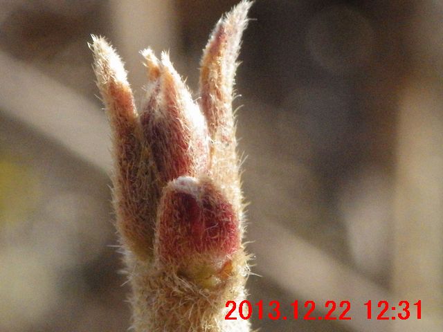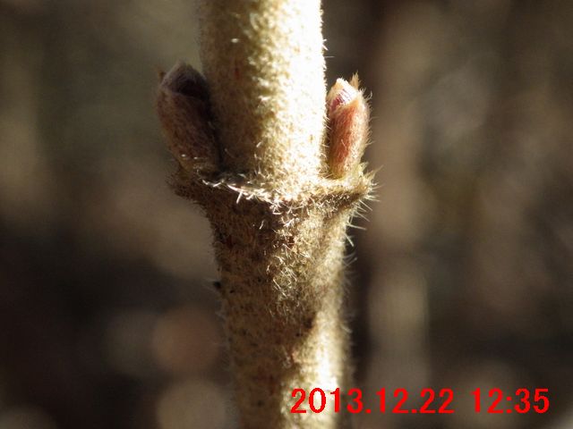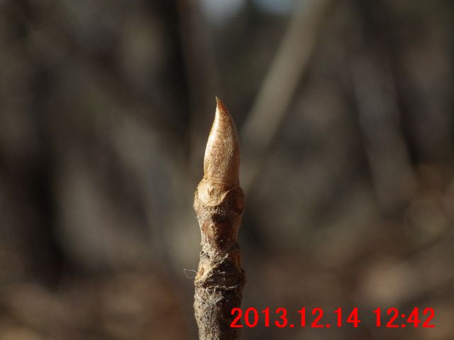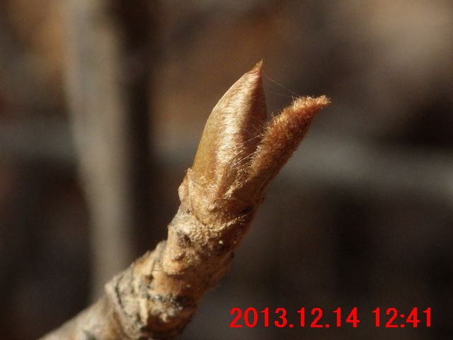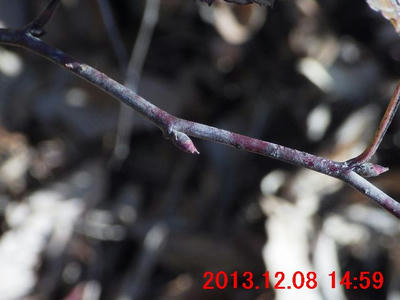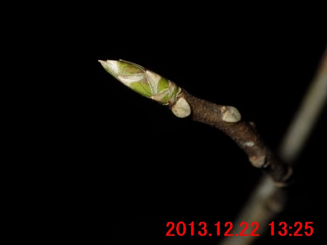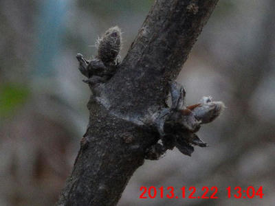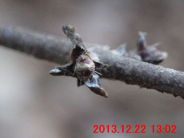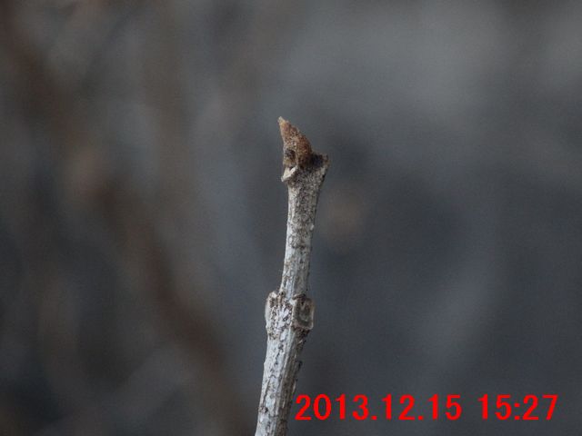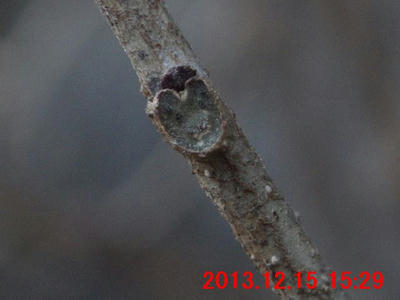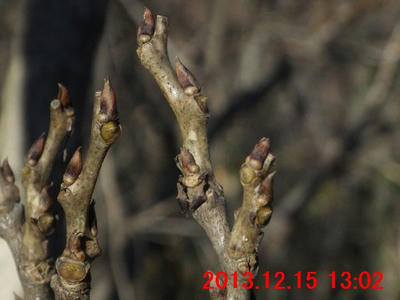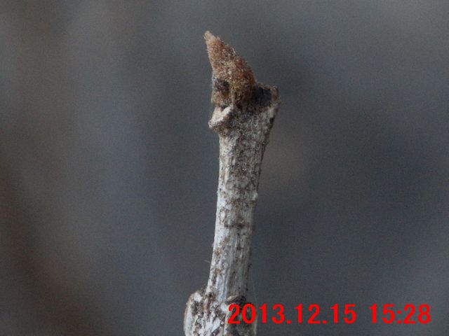 画像で確認すると蕾のようだった(画像13)。また、枝先には冬芽のようなものが写っている。冬芽のようなものについては、次の観察時にはきちんと確認してみたい。