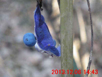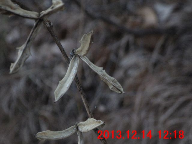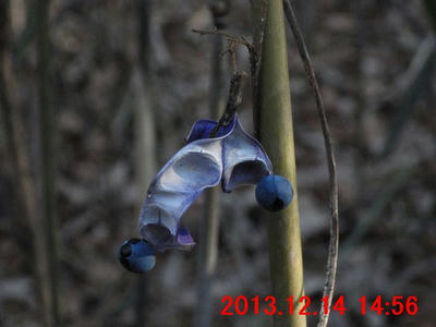 枯れ残っている草本が目に付いた。果実の殻が三つに裂けていた。ユリ科の雰囲気である。