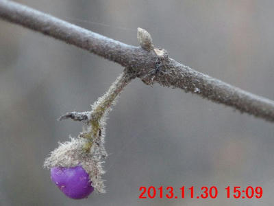 しかし、後日(2013年12月14日)、別の個体(ムラサキシキブ)の果実を見て、この個体(画像28 )と違うことに気付いた。