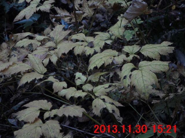 沢筋で観察していたサラシナショウマと、イヌショウマ(犬升麻)は、イノシシに掘られて姿を消してしまったが、ここの観察株はどうにか残った。