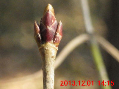 突然に、道端の葉、枝が対生の木本が目に付いた。冬芽も対生である。