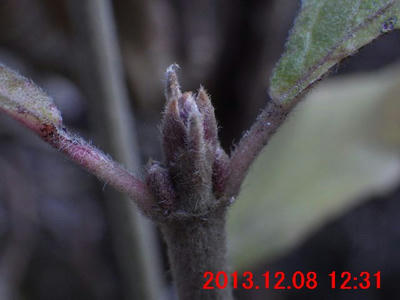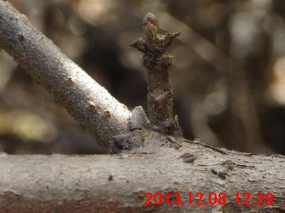 この日は判断できなかったが、後日、あちこちで、似たような枝を見かけるようになった。