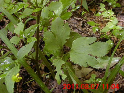 ウリハダカエデ 葉は対生し、葉身は長さ10~15cmの扇状五角形で浅く3~5裂する。