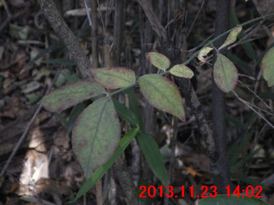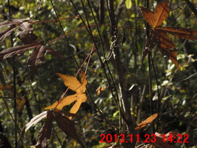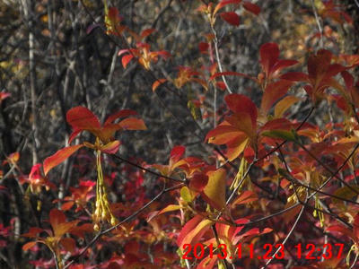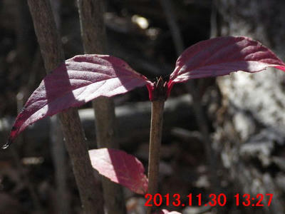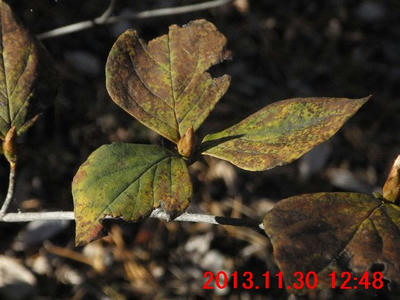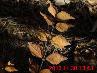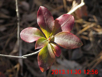 獣道を歩いていたら紅葉したアブラツツジがあった。