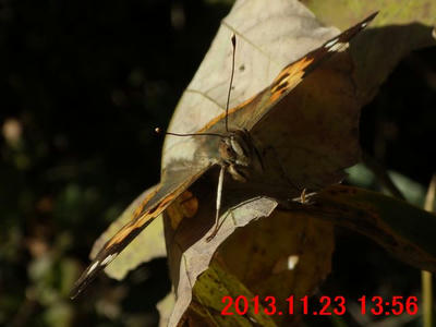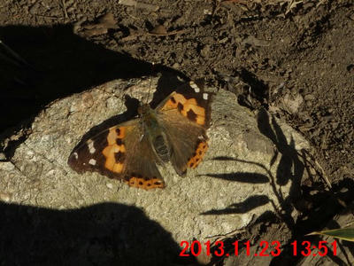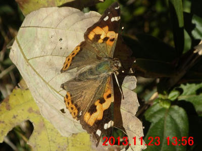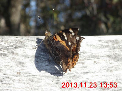 勢いよく飛び回り、そして、積極的に日向ぼっこをしていた。成虫で越冬するとのことなので、この個体は、越冬するつもりかも知れない。