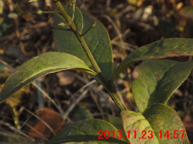 最近になって気付いたのだが、まだ花を付けないナガバノコウヤボウキは、花を咲かす成木と比べると、葉の形と付き方がが違う。