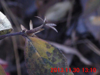 キハギの果実は見当たらなくなってしまった。代わりに冬芽が目立つようになっていた。