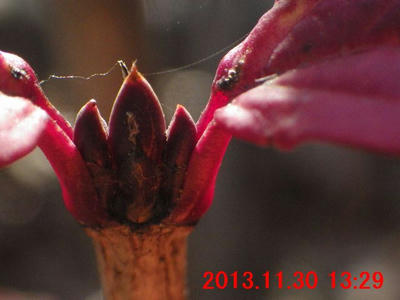 この季節にオカトラノオの果実を見たのは初めてかも知れない。狂い咲きの名残なのだろうか。目に付いたので撮影して見た。