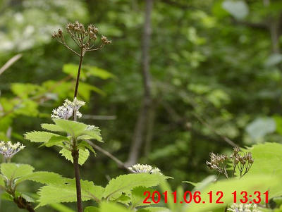 この時点では、東の尾根のコアジサイの開花が楽しみだった。まだ、「白い蕾と見えたものは、結実した若い果実だった」と、いうことに気付いていなかった。